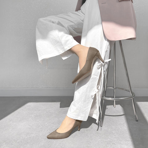 10% OFF: 2024SS: iCoN COLORS: Pointed toe suede pumps (C9042) Greige S
