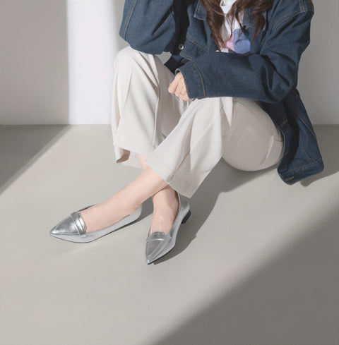 10% OFF: 2024SS: iCoN COLORS: Pointed Toe Smooth Pumps (C76533) Silver