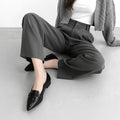 足の甲を綺麗に見せる甲浅カッティングとポインテッドトゥで女性らしい印象のローファー。メンズライクなローファーデザインはビジネスシーンからパーティシーンまで幅広く活躍してくれる一足です。