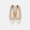 靴本体と異なる配色や異素材が施されたヒールがお洒落なポインテッドトゥフラットシューズ。インソールにもヒールと同じカラーや素材が用いられ、脱いでも可愛い一足に仕上がりました。